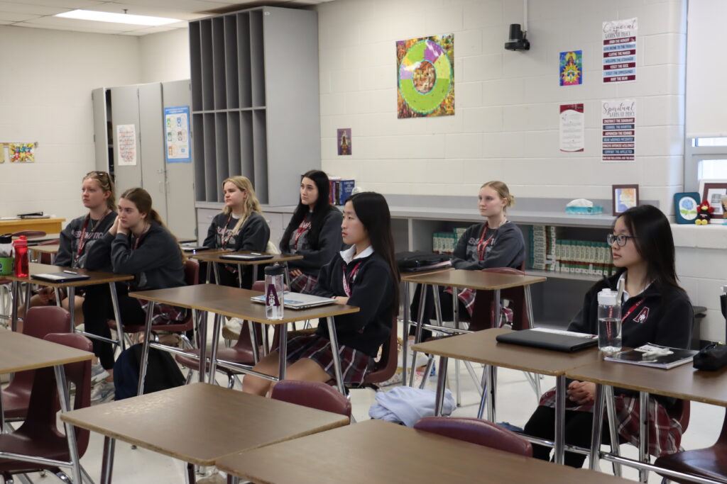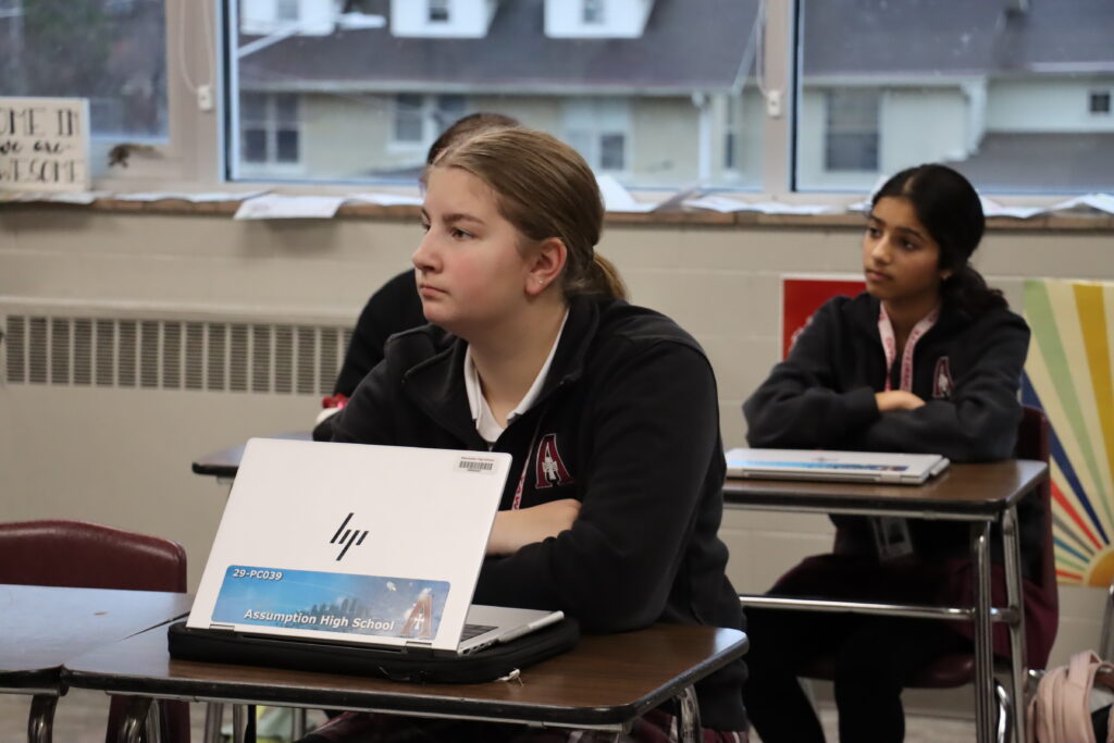 We were excited to host two career-interest opportunities this week during RTI. Students had the opportunity to learn about the pharmacy profession with a visiting pharmacist Amy Braden from Norton hospitals to talk about the work of a pharmacist and the training involved. We also had the opportunity to hear from Lauren Whitsell (c/o ’98 and mother to Ally 24 and Natalie ’27), Chief Production and Operations Officer for Starlims, a data management company, who came to discuss her experience at Assumption and its impact on her college and career journey. She also shared additional careers in IT and the impact of AI on the current world of work. Students are always welcome to hear from any of these career opportunities as they occur during RTI, and we look forward to the insight they provide our students.